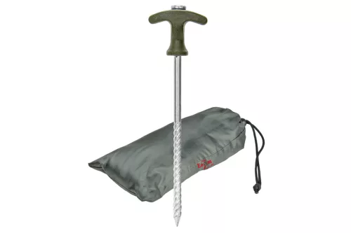 Praktikus tartóban elhelyezett, jól markolható műanyag fejjel és masszív (o 0,7 cm átmérőjű), menetes fém szárral gyártott leszúró a sátorponyvák stabil rögzítéséhez. A csomagban 10 darab leszúró kapott helyet.