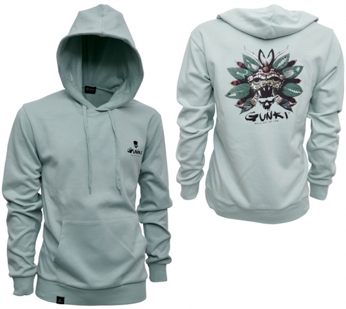 Kényelmes pulóver Gunki logóval. Állítható kapucnival és nagy kenguru zsebbel rendelkezik. Kellemes és rugalmas anyag. Összetétel: 60% pamut, 40% poliészter, szövet súlya 280g/m2.