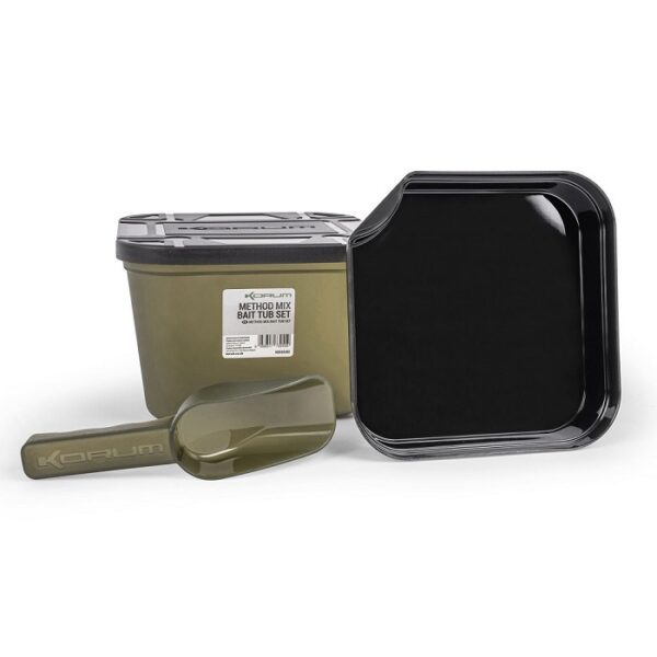 Korum Method Mix Bait Tub Set tökéletes feeder horgászathoz, kisebb mennyiségű etetőanyag/pellet keveréséhez. Belső tálcával érkezik, hogy a csalikat szükség esetén elkülönítve tarthassuk, és egy külön kis edénnyel a csalik rendezett keveréséhez.