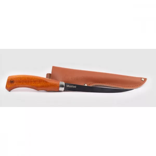 A Mustad Wood Handle Knife 6″ egy kiváló minőségű, korrózióálló filézőkés, amelyet kifejezetten a horgászok és konyhai használatra igényes szakácsok számára terveztek. Az ergonomikus fa markolat kényelmes és stabil fogást biztosít, míg a rozsdamentes acél penge precíz és könnyed vágást tesz lehetővé. A kés közepes rugalmasságú pengéje ideális halkészítéshez, filézéshez és egyéb konyhai műveletekhez. A biztonságos tárolás érdekében a kés bőr tokban érkezik.
