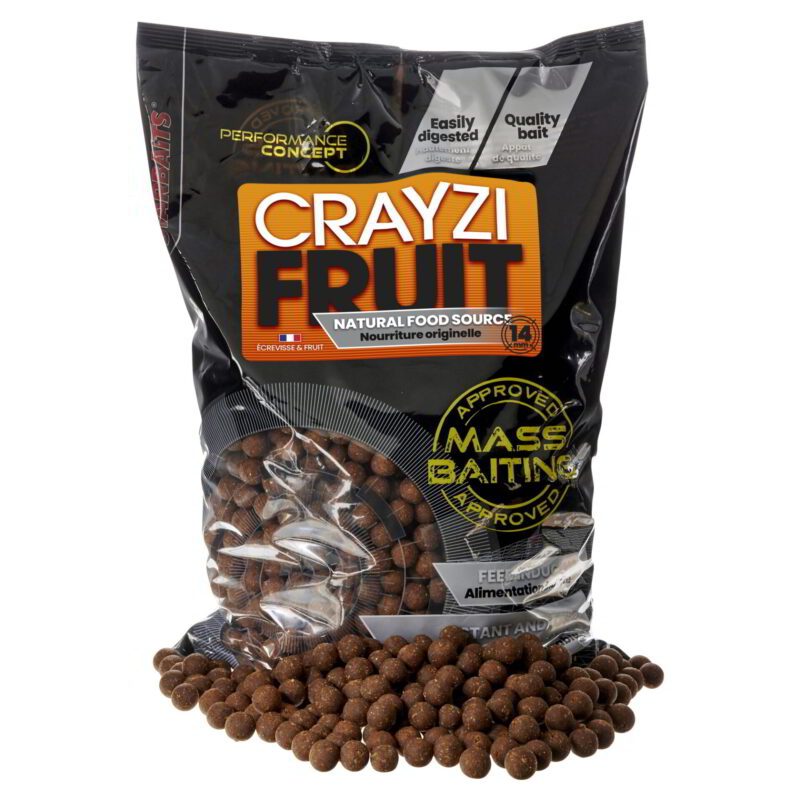 A bojli CRAYZI FRUIT két fő összetevőt egyesít, amelyek ellenállhatatlanok a pontyok számára: rákkaliszt és gyümölcskivonatok. A kiegyensúlyozott összetételnek és a gyors vonzerőnek köszönhetően a CRAYZIFRUIT bojlik alkalmasak gyors rövid horgászatokra, valamint hosszú távú masszív etetésre is. Egész évben használható. A bojli rendkívül aromás, kifejezetten édes-sós és húsos ízű, aminek még a legóvatosabb ponty sem tud ellenállni.